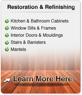 Our expertise and meticulous attention to detail ensures that you receive the highest level of satisfaction with your wood restoration project. And our Green products and processes make restoration a choice you can feel good about. Maybe you’re looking to simply restore the lost beauty of your kitchen cabinetry, or possibly update with a total color change. Want to restore those worn-down hardwood floors, or re-beautify tired moldings or baseboards, doors, window sills and frames? Whatever the project, The Wood Doctor has just the remedy to bring your wood back to life.